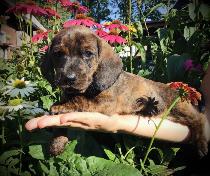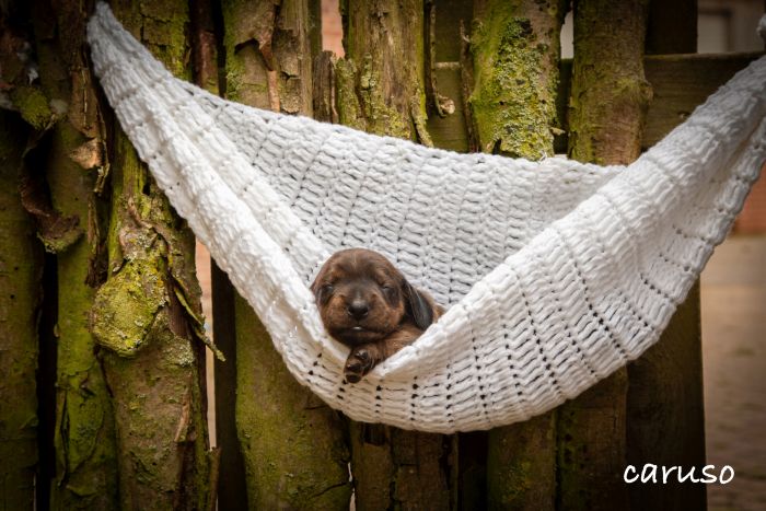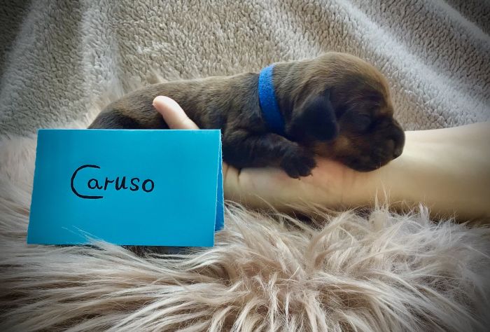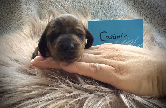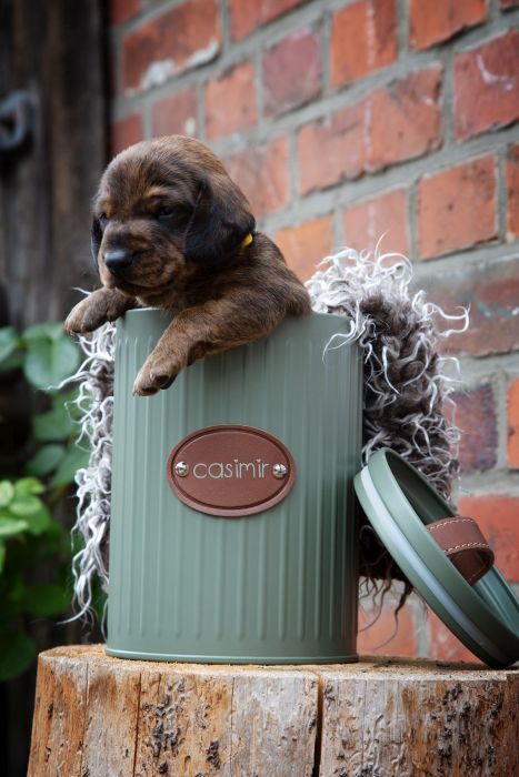 geboren. Alle vier Rüden haben die Farbe rot gestromt. Wir sind gespannt, wie sich sich weiter farblich entwickeln.