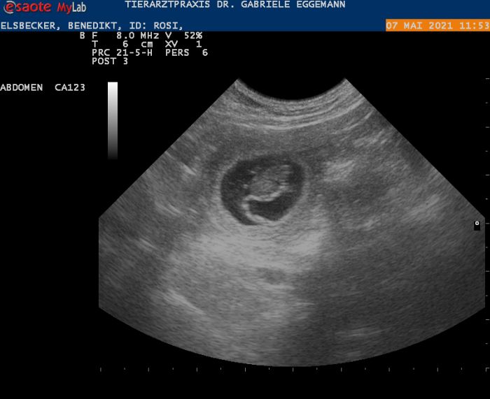 Rosi ist tragend und wir freuen uns sehr darüber. Die Ultraschall- Untersuchung hat gezeigt, dass Rosi