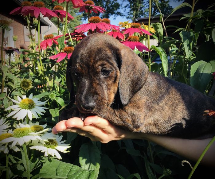vorraussichtlich im Juni ´21 Welpen bekommt. Es werden ausschließlich rote und rot- gestromte Welpen